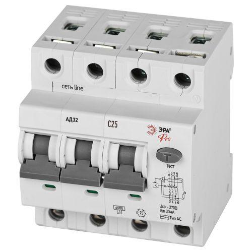 Выключатель автоматический дифференциального тока 3P+N C 25А 30мА тип AC защита 230В АВДТ 4.5кА PRO D32E4C25AC30P АД32 электронное Эра Б0057795