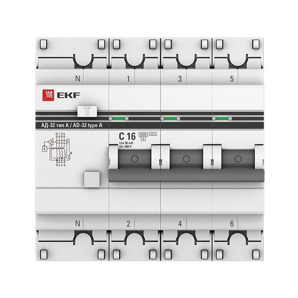 Выключатель автоматический дифференциального тока 4п (3P+N) C 16А 30мА тип A 6кА АД-32 защита 270В электрон. PROxima EKF DA32-6-16-30-4P-a-pro
