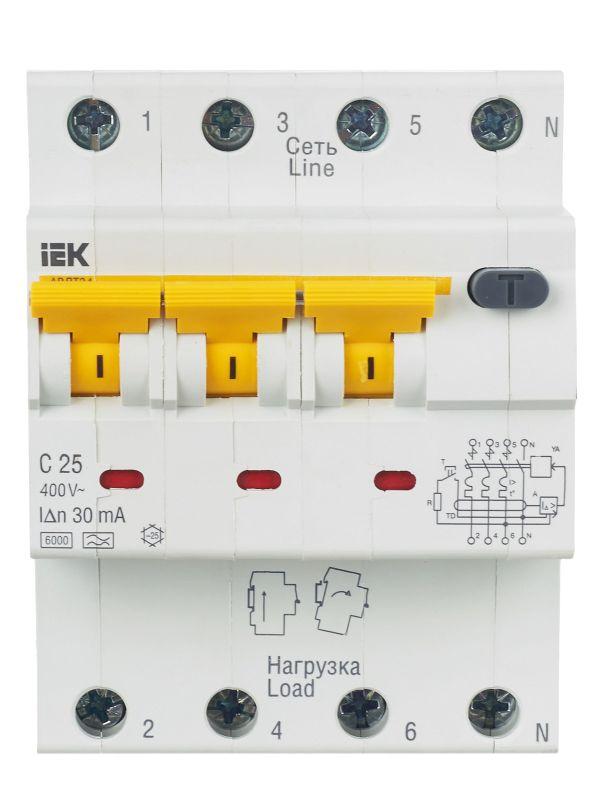 Автоматические выключатели дифференциального тока АВДТ34 предназначены для защиты человека от поражения электрическим током при повреждении изоляции электроустановок, для предотвращения пожаров вследствие протекания токов утечки на землю и для защиты от перегрузки и короткого замыкания в сетях переменного тока напряжением 400 В и частотой 50 Гц. АВДТ34 со встроенной защитой от сверхтоков реагируют не только на синусоидальные переменные дифференциальные токи, но и на пульсирующие постоянные дифференциальные токи. Источником пульсирующего тока являются, например, стиральные машины с регуляторами скорости, регулируемые источники света, телевизоры, видеомагнитофоны, персональные компьютеры и др. АВДТ34 выпускаются в четырехполюсном исполнении на номинальные токи 6, 10, 16, 20, 25, 32, 40, 50, 63 А и номинальные отключающие дифференциальные токи 10, 30, 100, 300 мА.