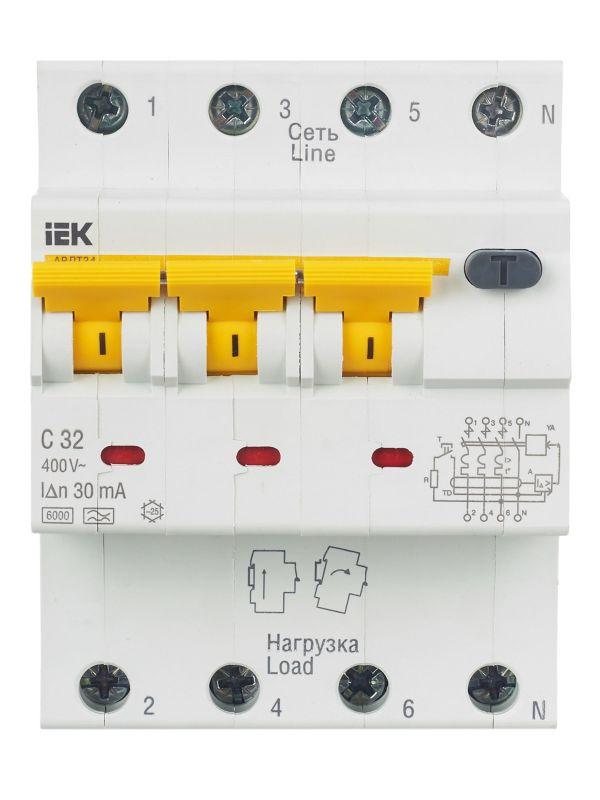 Выключатель автоматический дифференциального тока 4п (3P+N) C 32А 30мА тип A 6кА АВДТ-34 KARAT IEK MAD22-6-032-C-30