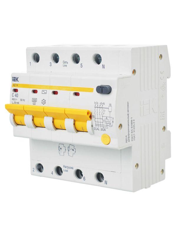 Выключатель автоматический дифференциального тока 4п C 40А 30мА тип AC 4.5кА АД-14 KARAT IEK MAD10-4-040-C-030