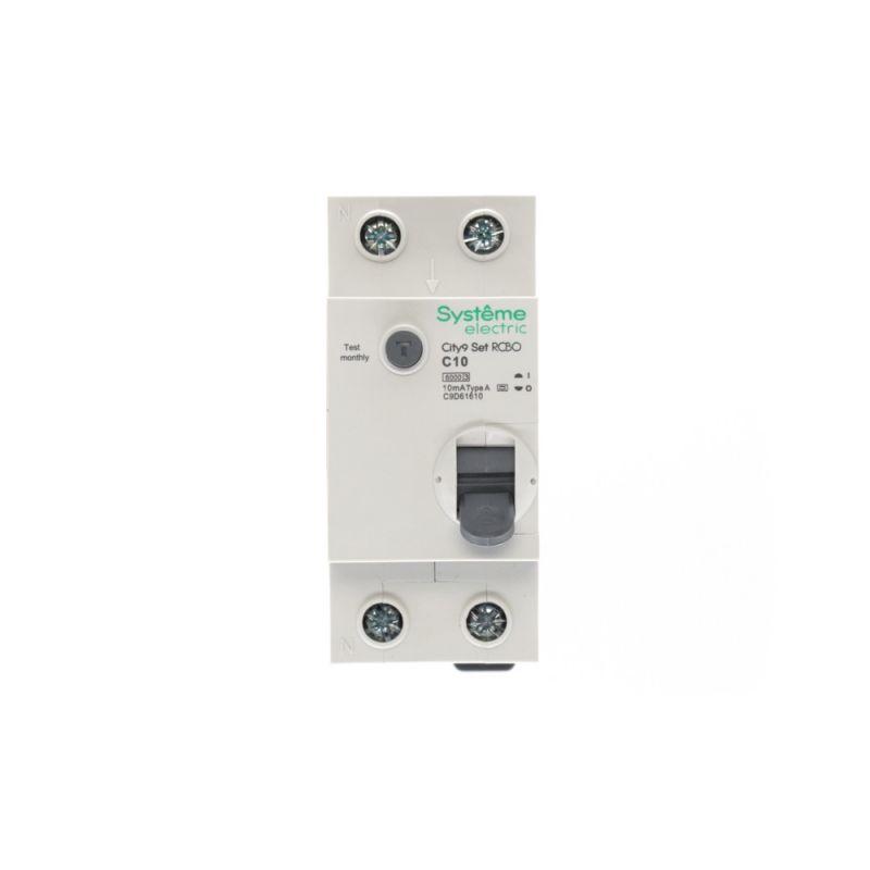 Автоматические выключатели дифференциального тока (АВДТ) серии City9 Set Systeme Electric,1P+N, номинальный ток 10 А, характеристика С, Icn = 6 кА, ток утечки 10 мА, тип А. АВДТ применяется в электрических сетях напряжением 230В. Предназначен для защиты сети от перегрузок, людей от поражения электрическим током и токов короткого замыкания. Уставка по току утечки 10 мА обеспечивает гарантированную защиту людей при прямом прикосновении. Кнопка тест обеспечивает проверку работоспособности аппарата. Крепление на DIN-рейку шириной 35 мм. Безопасные клеммы.