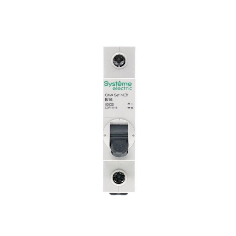 Автоматический выключатель серии City9 Set Systeme Electric, 1-полюсный, номинальный ток 16 А, характеристика B, Icn = 4.5 кА. Применяется в электрических сетях напряжением 230 В. Предназначен для защиты от перегрузок и токов короткого замыкания. Оснащен механизмом «мгновенной коммутации». Ударопрочный корпус из специального пластика с 6 металлическими заклепками. Безопасные клеммы исключают попадание кабелей в заклеммное пространство.