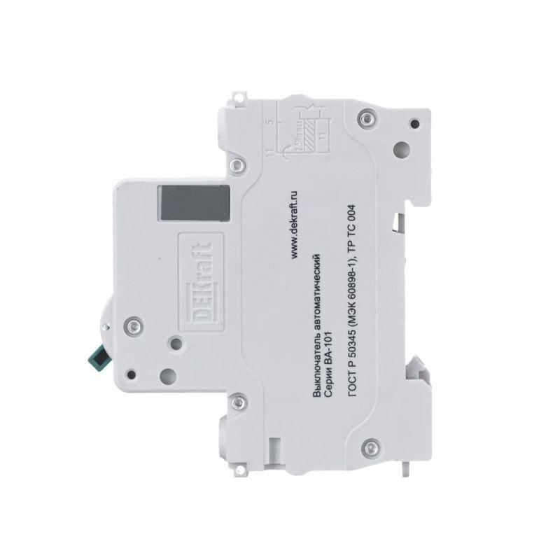 Автоматический выключатель серии ВА-101 Dekraft; 1P; номинальный ток 10 А; характеристика С; отключающая способность 4,5 кА. 5 монолитных заклепок повышают прочность корпуса аппарата. Сплошная лицевая панель обеспечивает безопасность эксплуатации аппарата. Боковые каналы охлаждения повышают стабильность работы при высоких температурах окружающей среды. Есть возможность установки дополнительных аксессуаров с левой стороны устройства. Аппарат на 100% совместим с корпусами Dekraft и Systeme Electric.