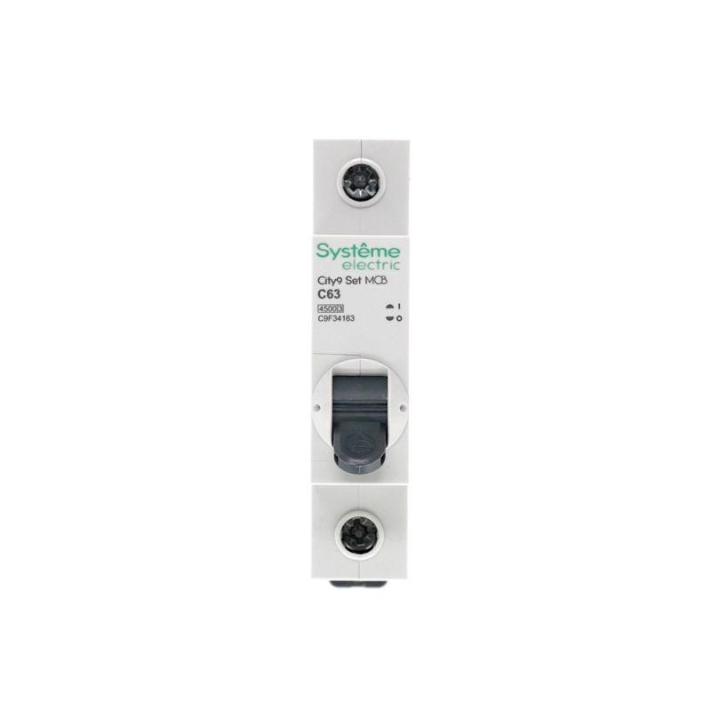 Автоматический выключатель серии City9 Set Systeme Electric, 1-полюсный, номинальный ток 63 А, характеристика С, Icn = 4.5 кА. Применяется в электрических сетях напряжением 230 В. Предназначен для защиты от перегрузок и токов короткого замыкания. Оснащен механизмом «мгновенной коммутации». Ударопрочный корпус из специального пластика с 6 металлическими заклепками. Безопасные клеммы исключают попадание кабелей в заклеммное пространство.