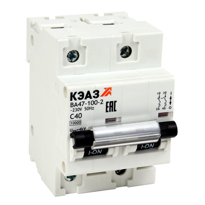 Выключатель автоматический модульный 2п C 100А 10кА ВА47-100-2C100-УХЛ3 КЭАЗ 318119