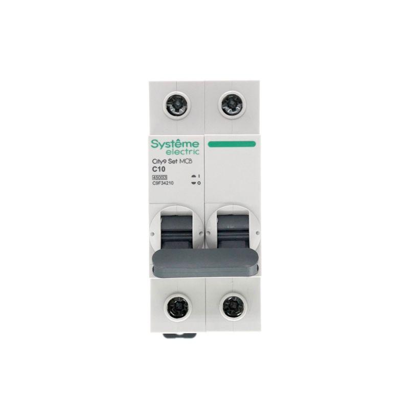 Автоматический выключатель серии City9 Set Systeme Electric, 2-полюсный, номинальный ток 10 А, характеристика С, Icn = 4.5 кА. Применяется в электрических сетях напряжением 230 В. Предназначен для защиты от перегрузок и токов короткого замыкания. Оснащен механизмом «мгновенной коммутации». Ударопрочный корпус из специального пластика с 6 металлическими заклепками. Безопасные клеммы исключают попадание кабелей в заклеммное пространство.
