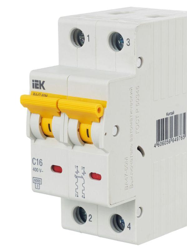 Выключатель автоматический модульный 2п C 16А 6кА ВА47-60M KARAT IEK MVA31-2-016-C