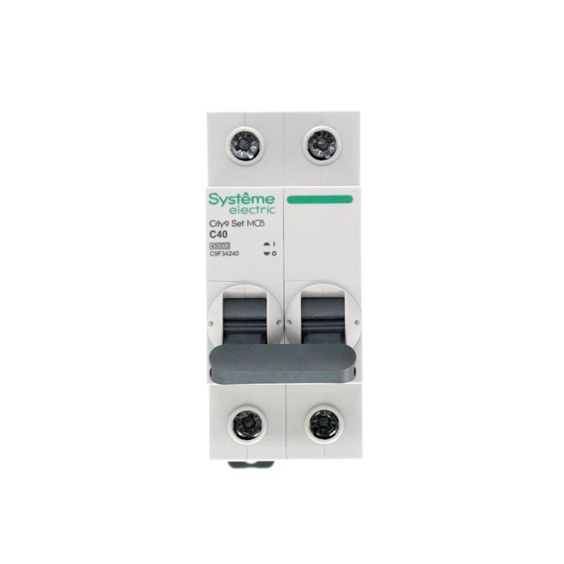 Автоматический выключатель серии City9 Set Systeme Electric, 2-полюсный, номинальный ток 40 А, характеристика С, Icn = 4.5 кА. Применяется в электрических сетях напряжением 230 В. Предназначен для защиты от перегрузок и токов короткого замыкания. Оснащен механизмом «мгновенной коммутации». Ударопрочный корпус из специального пластика с 6 металлическими заклепками. Безопасные клеммы исключают попадание кабелей в заклеммное пространство.
