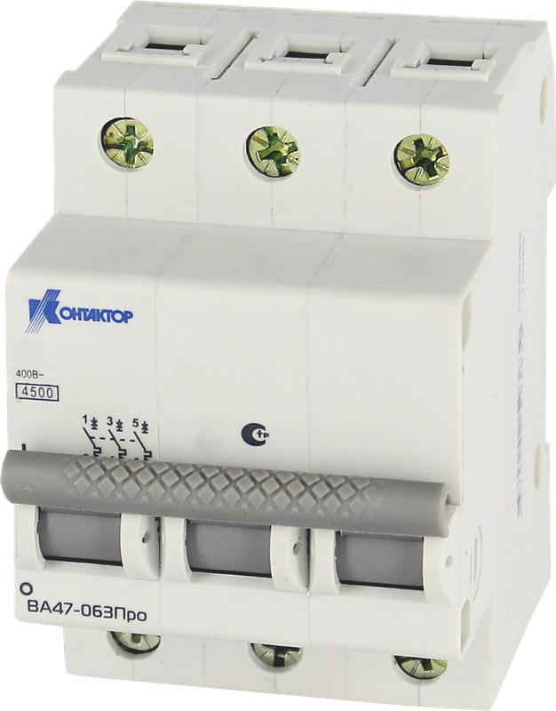 Выключатель автоматический модульный 3п C 10А 4.5кА ВА 47-063Про Контактор 7000145