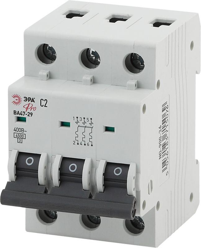Выключатель автоматический модульный 3п C 2А ВА47-29 Pro NO-900-36 ЭРА Б0031768
