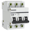 Выключатель автоматический модульный 3п C 50А 4.5кА ВА 47-29 Basic EKF mcb4729-3-50C