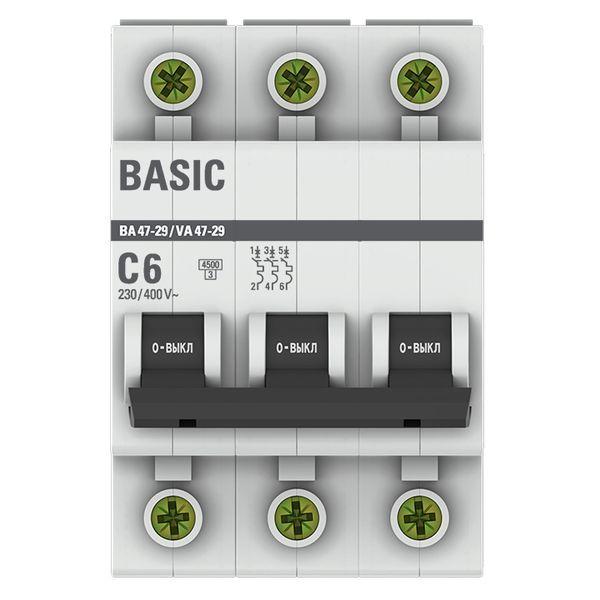 Выключатель автоматический модульный 3п C 6А 4.5кА ВА 47-29 Basic EKF mcb4729-3-06C