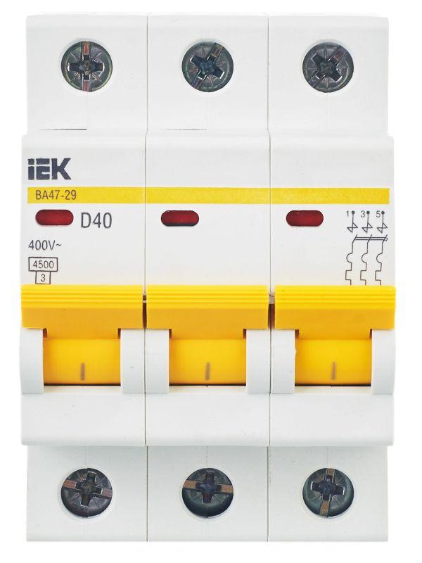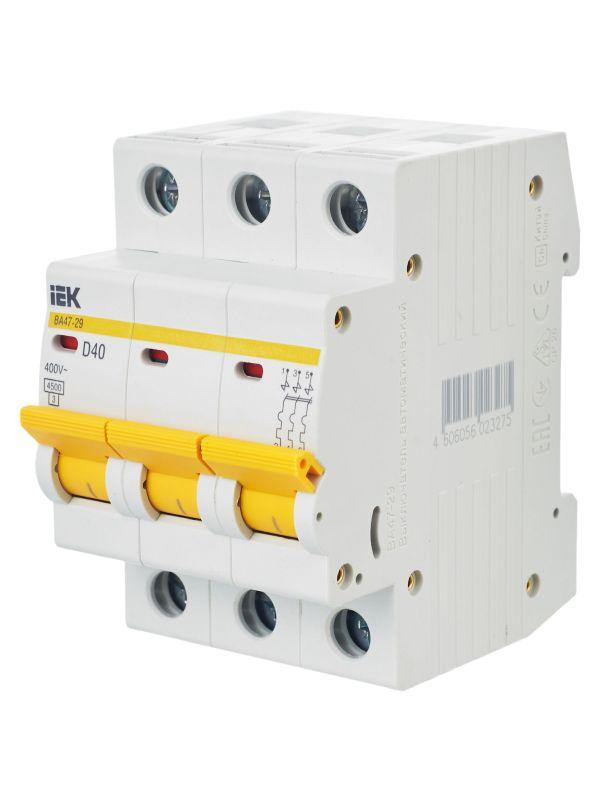 Выключатель автоматический модульный 3п D 40А 4.5кА ВА47-29 KARAT IEK MVA20-3-040-D