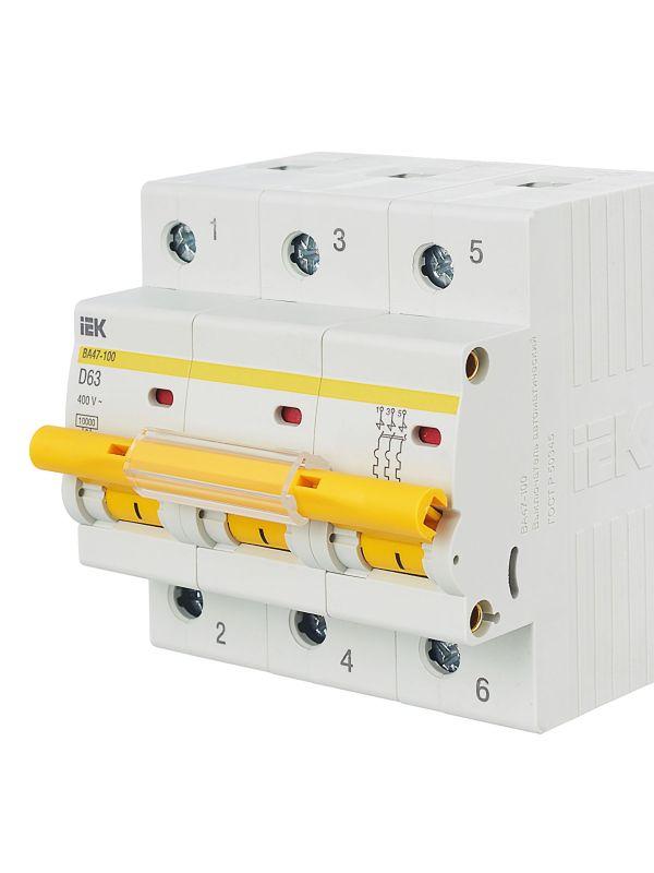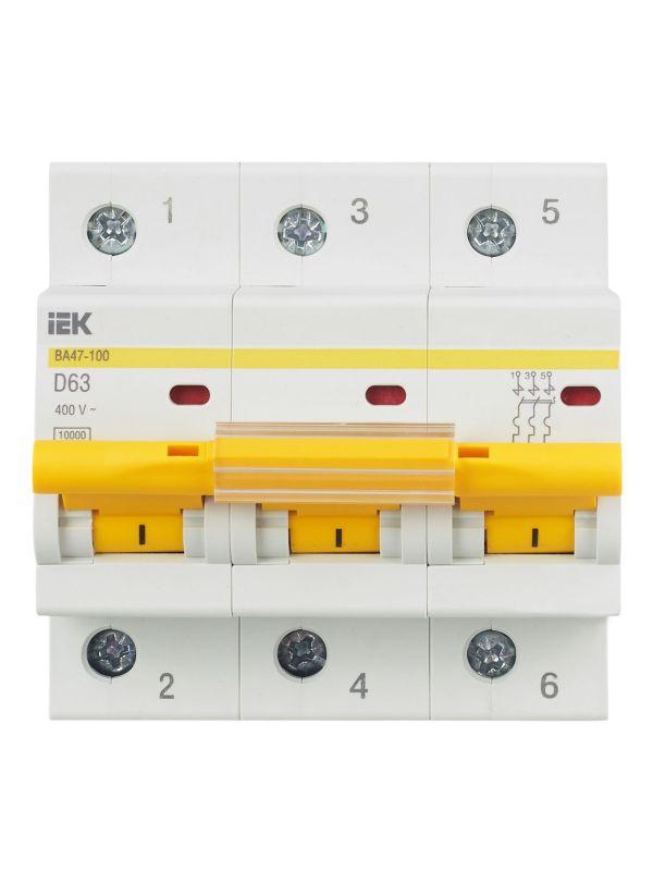Выключатель автоматический модульный 3п D 63А 10кА ВА47-100 KARAT IEK MVA40-3-063-D