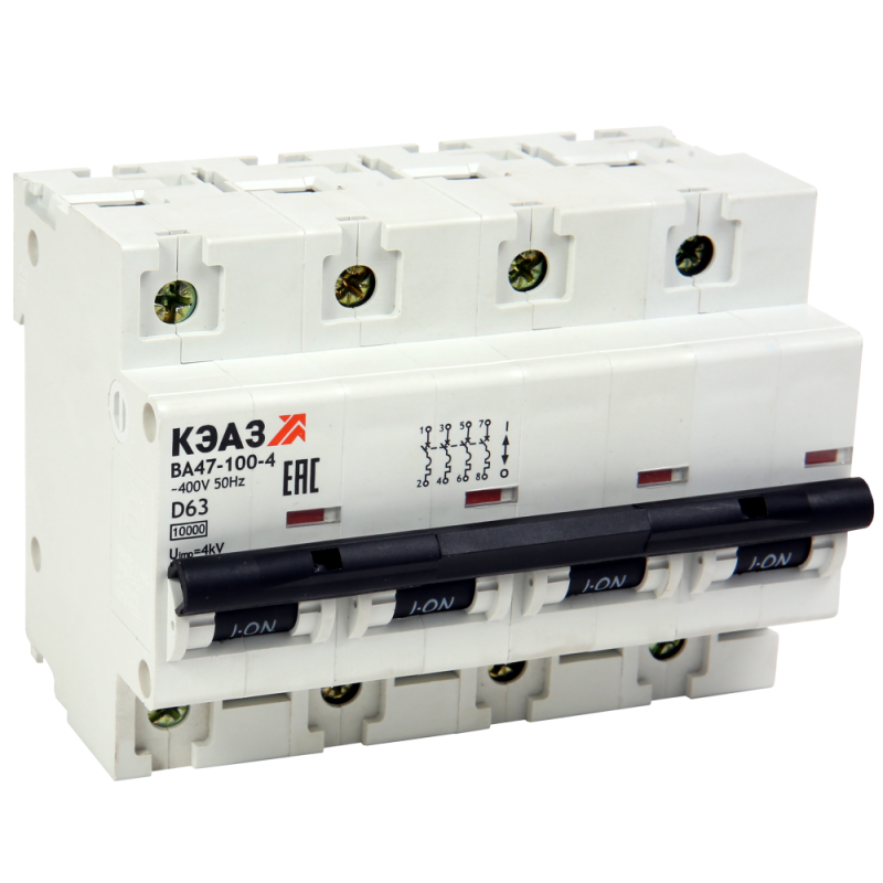 Выключатель автоматический модульный 4п D 80А 10кА ВА47-100-4D80-УХЛ3 КЭАЗ 318154