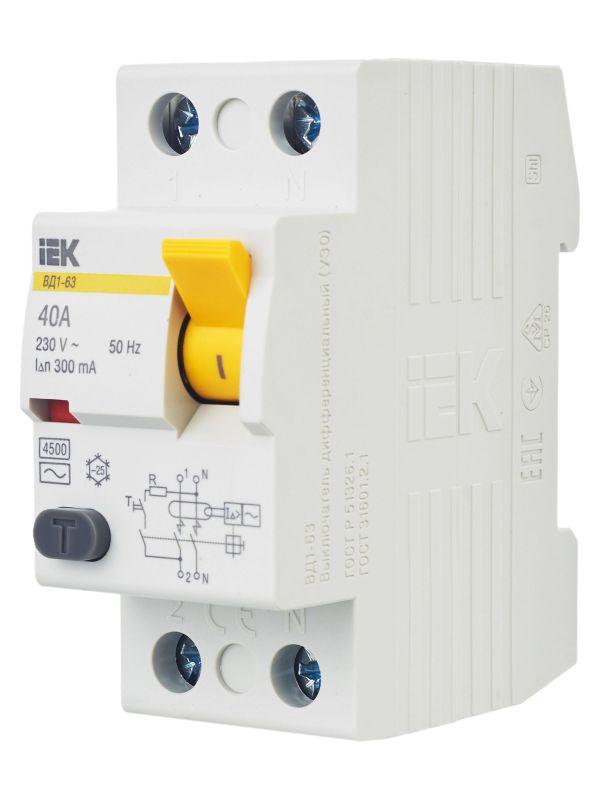 Выключатель дифференциального тока (УЗО) 2п 40А 300мА тип AC ВД1-63 KARAT IEK MDV10-2-040-300