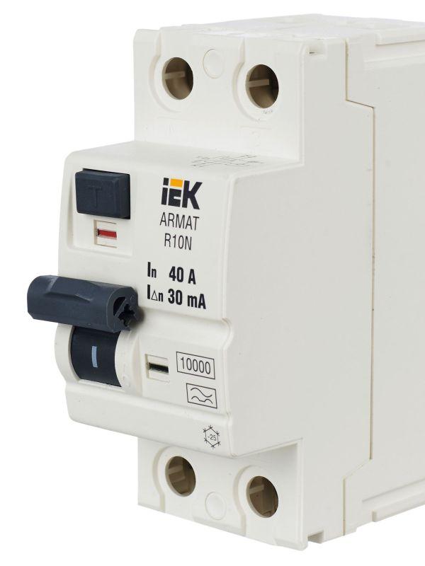 Выключатель дифференциального тока (УЗО) 2п 40А 30мА тип A ВДТ R10N ARMAT IEK AR-R10N-2-040A030