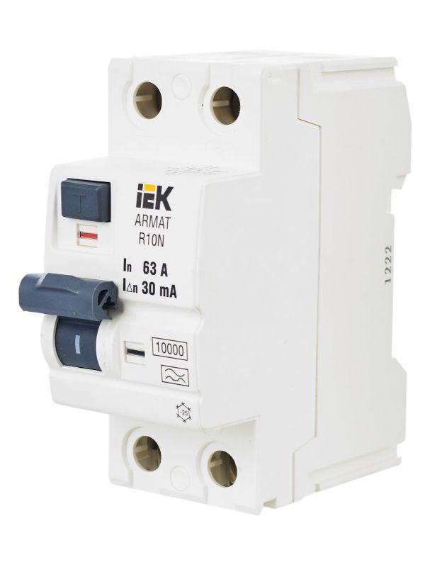 Выключатель дифференциального тока (УЗО) 2п 63А 30мА тип A ВДТ R10N ARMAT IEK AR-R10N-2-063A030