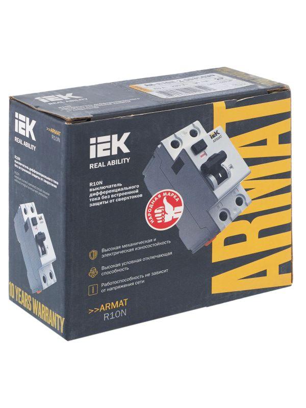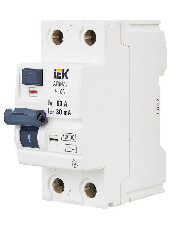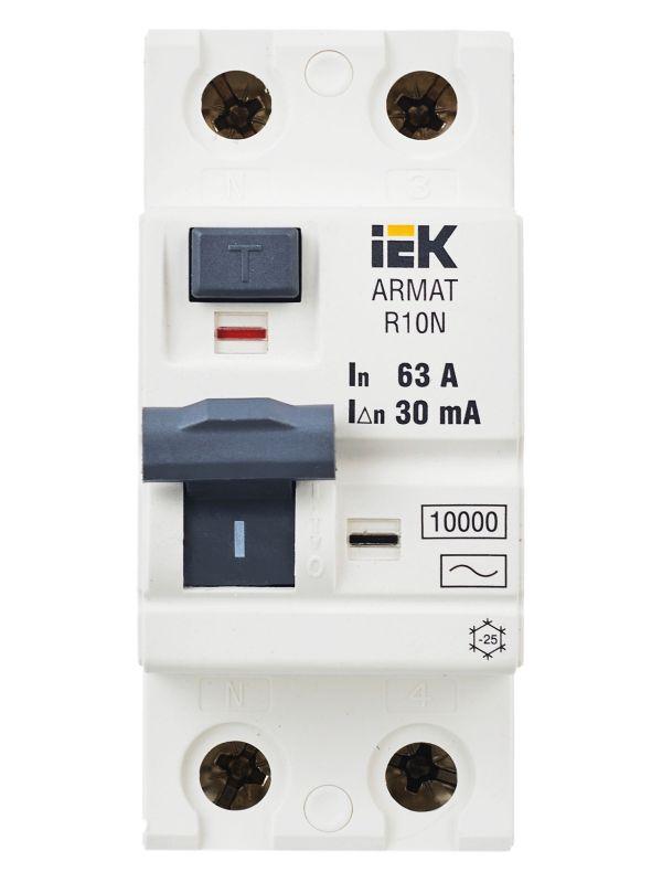 Выключатель дифференциального тока (УЗО) 2п 63А 30мА тип AC ВДТ R10N ARMAT IEK AR-R10N-2-063C030
