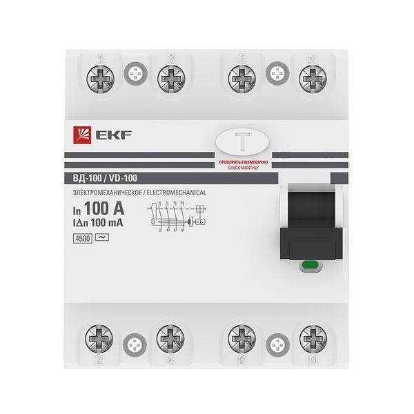 Выключатель дифференциального тока (УЗО) 4п 100А 100мА тип AC ВД-100 (электромех.) PROxima EKF elcb-4-100-100-em-pro