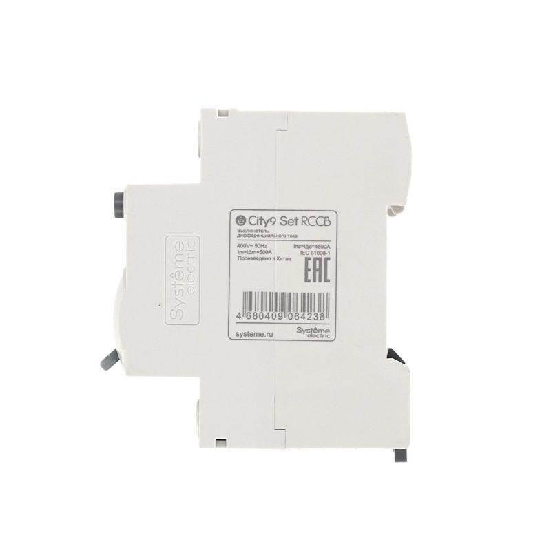 Выключатель дифференциального тока (ВДТ) или устройство защитного отключения (УЗО) серии City9 Set Systeme Electric, 4-полюсный, номинальный ток 25А, ток утечки 30 мА, тип АС, электромеханический. Применяется в электрических сетях напряжением 400В. Уставка по току утечки 30 мА обеспечивает гарантированную защиту людей при прямом и косвенном прикосновении. Кнопка тест обеспечивает проверку работоспособности аппарата. Крепление на DIN-рейку шириной 35 мм. Подключение сверху и снизу. Безопасные клеммы.