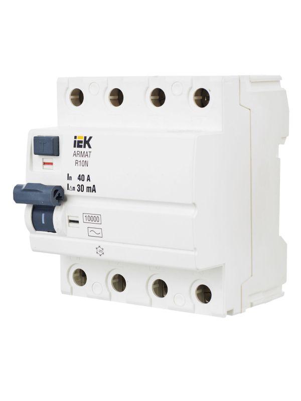 Выключатель дифференциального тока (УЗО) 4п 40А 30мА тип A ВДТ R10N ARMAT IEK AR-R10N-4-040A030