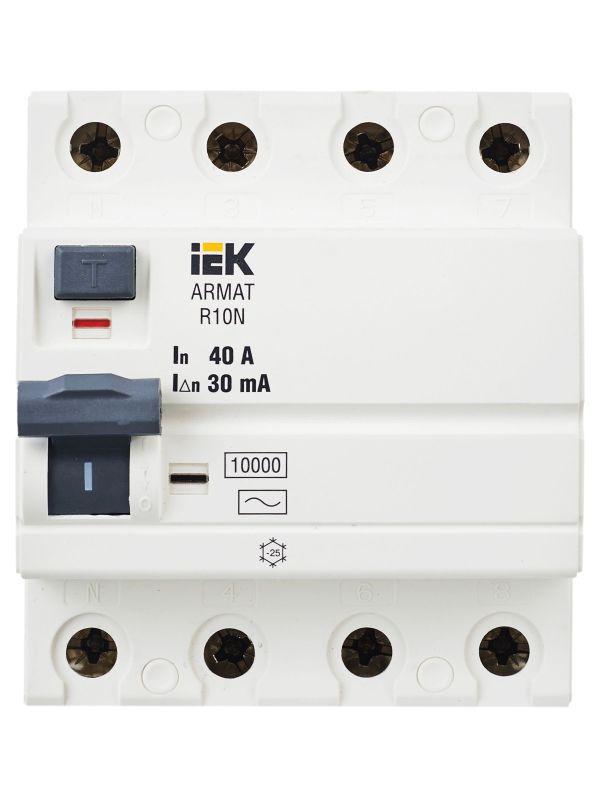 Выключатель дифференциального тока (УЗО) 4п 40А 30мА тип AC ВДТ R10N ARMAT IEK AR-R10N-4-040C030