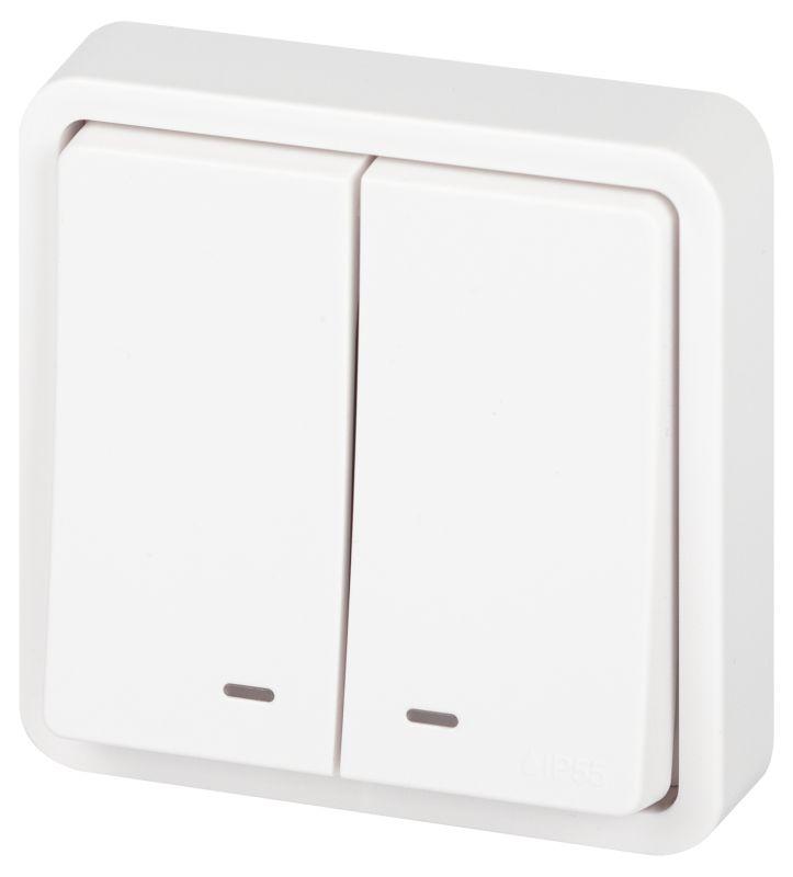 Выключатель влагозащищённый 2-клавишный с подсветкой серии Эра Эксперт накладн IP55 цвет белый 11-1525-01 открытой установки. Номинальные характеристики 10А 250В . Выполнен из качественного поликарбоната, оснащён уникальными винтовыми клеммами ЭКСПЕРТ для максимально качественного зажима кабеля в механизме.
