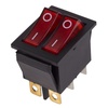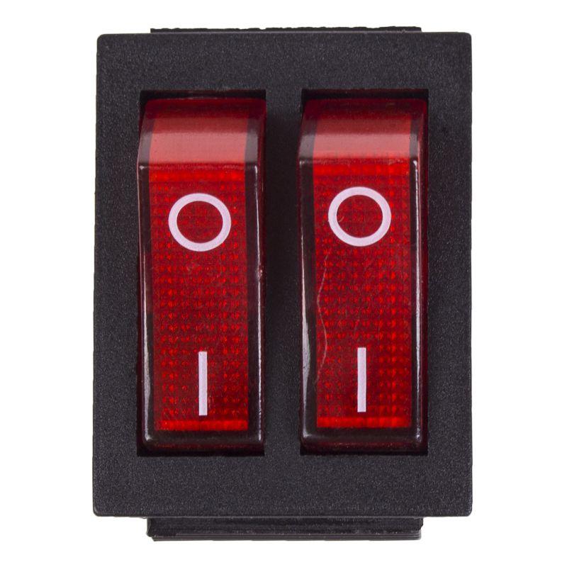 Двойной клавишный выключатель ON-OFF предназначен для коммутации электрических цепей. Используется для включения и выключения различного электрооборудования: сетевых фильтров и удлинителей, звукового оборудования, электроустановок на производстве и в автомобиле. Имеет два положения: принцип работы основан на перемещении клавиши в одну из позиций. Для переключения требуется приложить некоторое усилие. Две клавиши позволяют раздельно коммутировать контактные группы. Клавиши красного цвета оснащены подсветкой, которая помогает отслеживать рабочее состояние прибора и делает выключатель заметным в темноте. Монтаж осуществляется без применения винтов на плоских панелях толщиной от 0,8 до 3 мм. Контакты подключаются либо плоской клеммой, либо с помощью пайки. Предельное напряжение: 1500 В (АС) не более 1 минуты. Контактное сопротивление: не более 35 мОм.