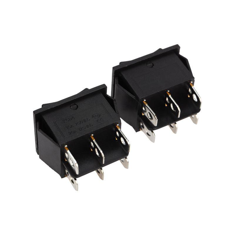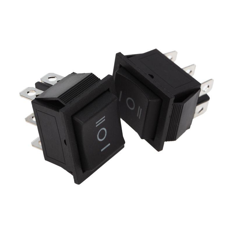 Клавишный переключатель (ON)-OFF-(ON) предназначен для коммутации электрических цепей. Используется для включения и выключения различного электрооборудования: сетевых фильтров и удлинителей, звукового оборудования, электроустановок на производстве и в автомобиле. У выключателя три положения и нет фиксации: после перемещения в положение «ON» клавиша автоматически возвращается в положение «OFF». Для переключения в нужное положение требуется приложить некоторое усилие. Монтаж осуществляется без применения винтов на плоских панелях толщиной от 0,8 до 3 мм. Контакты подключаются либо плоской клеммой, либо с помощью пайки. Предельное напряжение: 1500 В (АС) не более 1 минуты. Контактное сопротивление: не более 35 мОм.