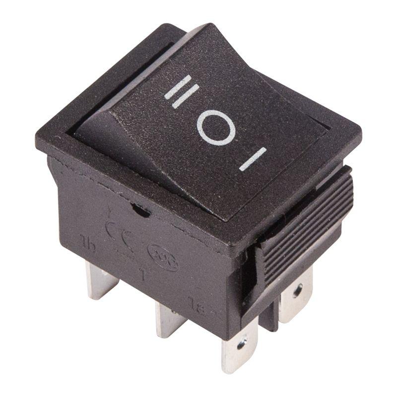 Клавишный переключатель ON-OFF-ON предназначен для коммутации электрических цепей. Используется для включения и выключения различного электрооборудования: сетевых фильтров и удлинителей, звукового оборудования, электроустановок на производстве и в автомобиле. Имеет три положения, одно из которых нейтральное (неактивное). Принцип работы основан на перемещении клавиши в одну из позиций. Для переключения требуется приложить некоторое усилие. Монтаж осуществляется без применения винтов на плоских панелях толщиной от 0,8 до 3 мм. Контакты подключаются либо плоской клеммой, либо с помощью пайки. Предельное напряжение: 1500 В (АС) не более 1 минуты. Контактное сопротивление: не более 35 мОм.