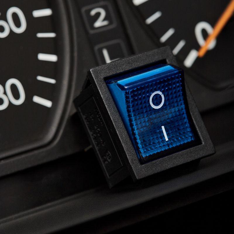 Клавишный выключатель ON-OFF предназначен для коммутации электрических цепей. Используется для включения и выключения различного электрооборудования: сетевых фильтров и удлинителей, звукового оборудования, электроустановок на производстве и в автомобиле. Имеет два положения: принцип работы основан на перемещении клавиши в одну из позиций. Для переключения требуется приложить некоторое усилие. Клавиша синего цвета оснащена подсветкой, которая помогает отслеживать рабочее состояние прибора и делает выключатель заметным в темноте. Монтаж осуществляется без применения винтов на плоских панелях толщиной от 0,8 до 3 мм. Контакты подключаются либо плоской клеммой, либо с помощью пайки. Предельное напряжение: 1500 В (АС) не более 1 минуты. Контактное сопротивление: не более 35 мОм.