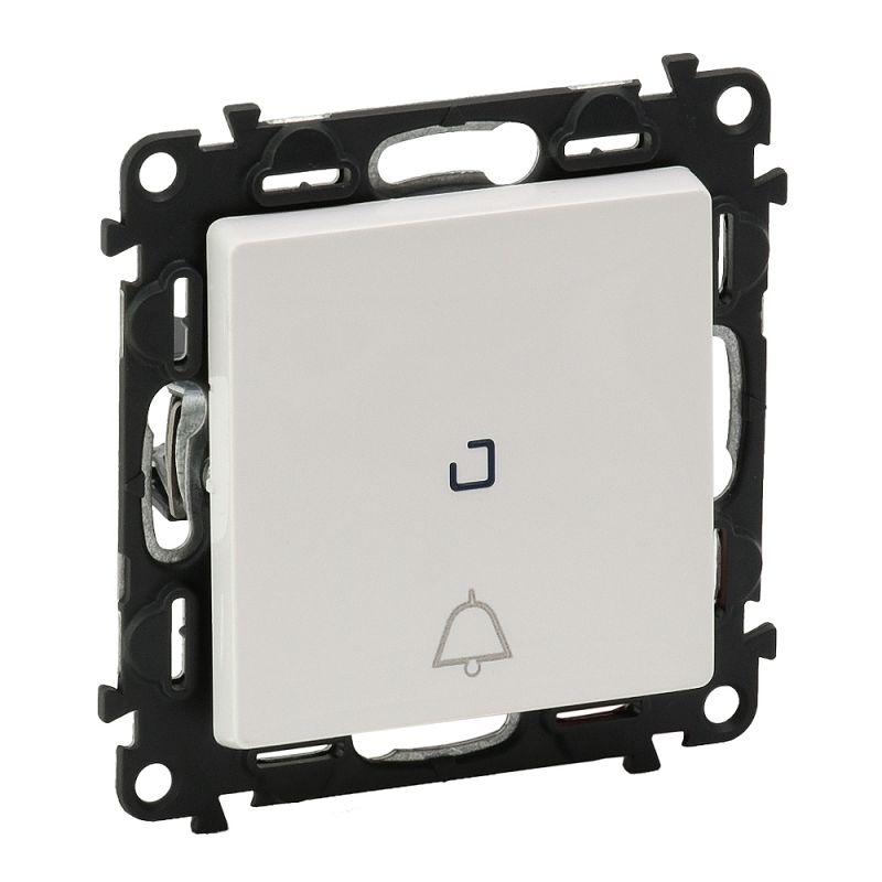 Выключатель кнопочный 1-кл. Valena Life 6А 250В с лицев. панелью с подсветкой безвинтов. зажимы с символом "звонок" механизм бел. Leg 752116