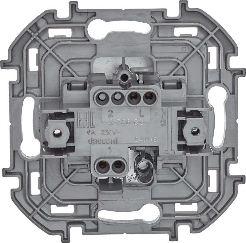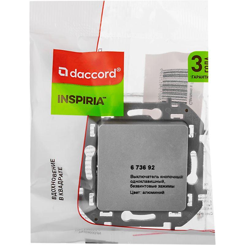 Выключатель кнопочный одноклавишный Legrand Inspiria для скрытого монтажа, номинальный ток 6 А, напряжение ~250В, цвет "Алюминий". Предназначен для установки в электрических сетях жилых и общественных зданий и используется для импульсного управления электрическими звонками, реле, контакторами, светорегуляторами и т.д. Особенности изделия: - Компактный механизм с глубиной всего 20 мм. комфортно размещается в различных монтажных коробках. - Материал клавиши - глянцевый пластик АБС, стоек к выгоранию и загрязнениям. - Все токоведущие части выключателя имеют защиту от случайного прикосновения. - Безвинтовые зажимы для присоединения проводов обеспечивают быстрое подключение и отключение, гарантируют надежное и долговечное соеднинение и не требуют обслуживания. - Удобные широкие толкатели облегчают работу по демонтажу провода. - Улучшенная эргономика снижает вероятность искрения при коммутации светодиодов. - Ход клавиши короткий, не громкий.