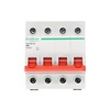 Выключатель-разъединитель серии City9 Set Systeme Electric, 4-полюсный, номинальный ток 40 А, с красной рукояткой управления. Предназначен для включения и отключения нагрузок в электрических сетях напряжением 400 В. Категория применения AC-22A. Двойной разрыв цепи обеспечивает гарантированное отключение питания и отсутствие сваривания контактов. Крепление на DIN-рейку шириной 35 мм.
