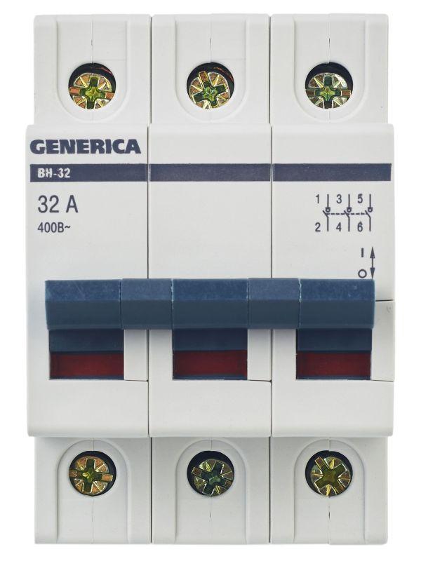 Выключатель нагрузки (мини-рубильник) 3п 32А ВН-32 GENERICA MNV15-3-032