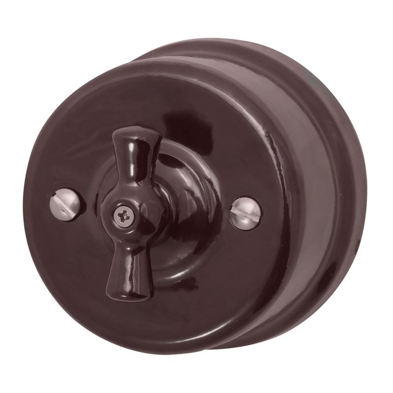 Выключатель поворотный 1-кл ОП ретро керамика корич. Bironi B1-200-02