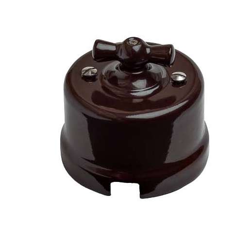 Выключатель поворотный 2-кл. ОП Лизетта 10А IP20 ретро 4 полож. керамика корич. Bironi B1-202-02