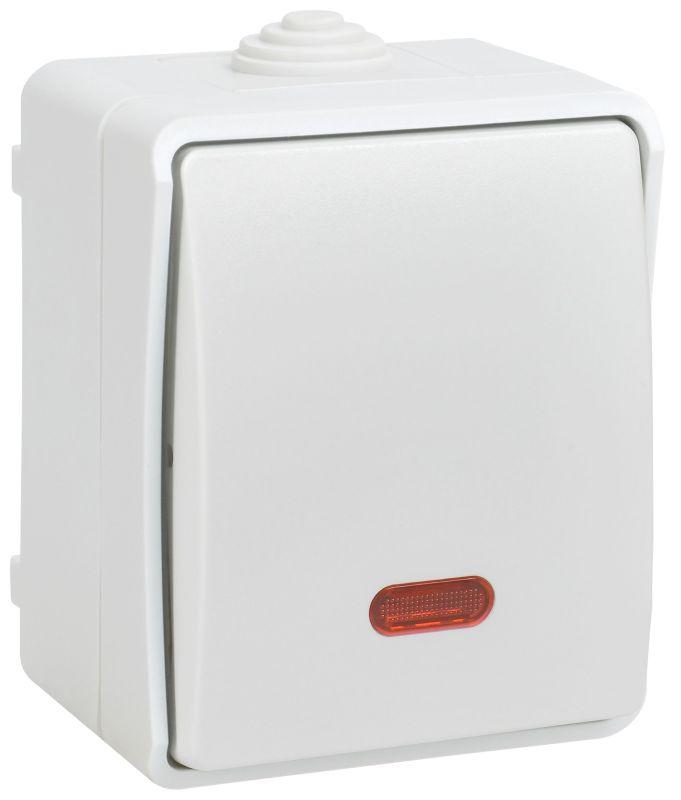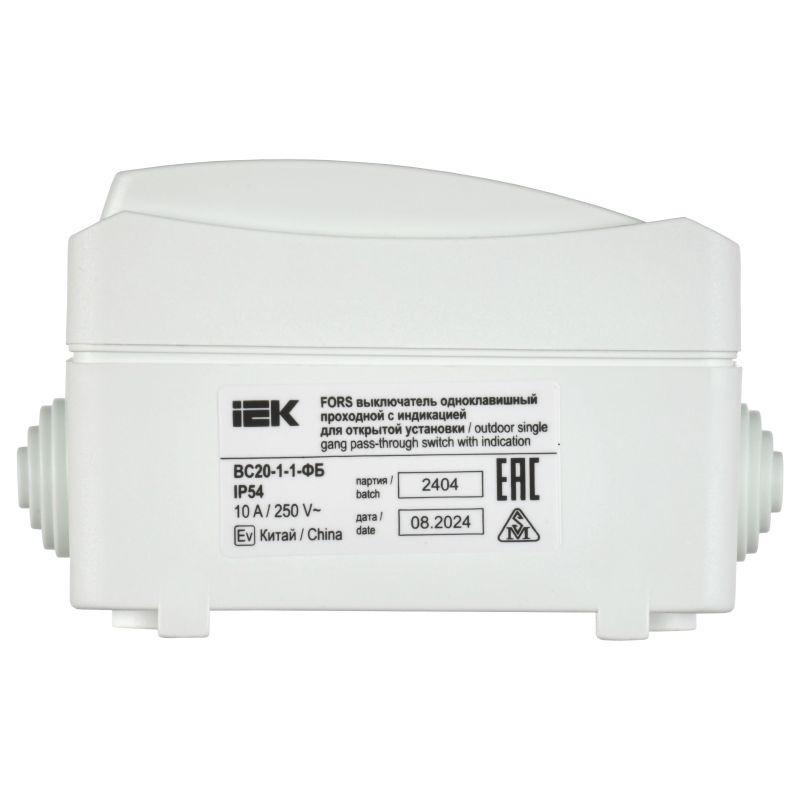 Выключатель проходной 1-кл. ОП Форс IP54 ВС20-1-1-ФБ с индикацией бел. IEK EVS11-K01-10-54-DC