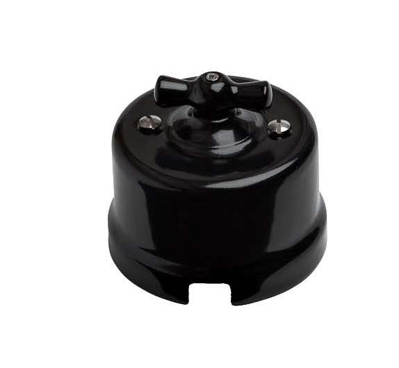 Выключатель проходной поворотный 1-кл. ОП Лизетта 10А IP20 ретро 2 полож. керамика черн. Bironi B1-201-03