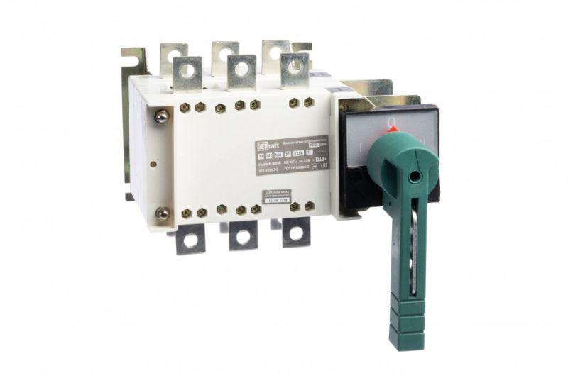 Выключатель-разъединитель серии ВР-101 Dekraft; 4P; реверсивный, тип Т (Тандем); номинальный ток 250 А; типоразмер 250; ном.напряжение до 690 В, 50 Гц; категория применения - АС-22В (смешанные активные и индуктивные нагрузки). Двойной разрыв контактов обеспечивает надежное гашение дуги и снижает риск повреждений. Подвод питания возможен как сверху, так и снизу аппарата. Медные клеммы обеспечивают высокую электрическую проводимость и удобство подключения проводников.