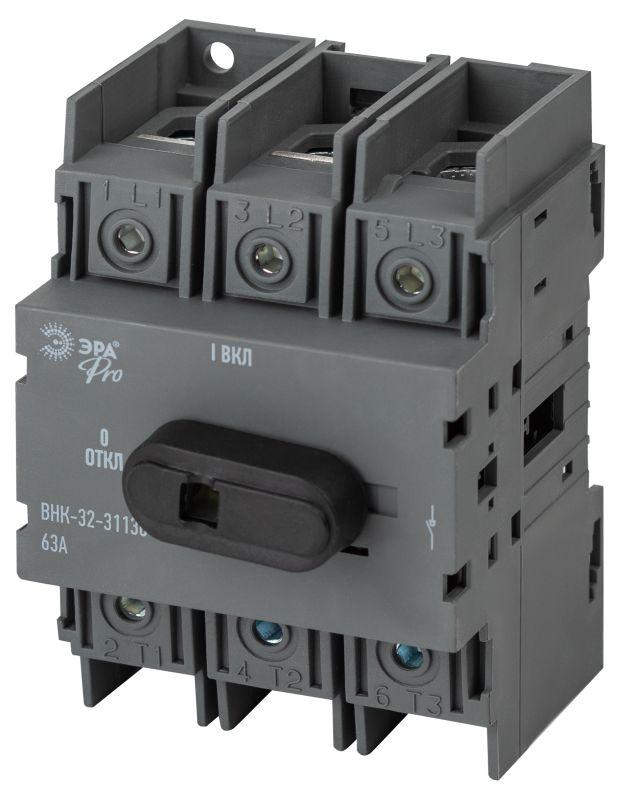 Выключатель-разъединитель предназначен для эксплуатации в электрических цепях переменного тока частотой 50Гц и напряжением до 690В. Используется для включения/отключения электрических цепей в устройствах распределения электрической энергии.Исполнения выключателей-разъединителей:- с установленной рукояткой для управления;- реверсивные, с установленной рукояткой для управления. Реверсивные выключатели-разъединители предназначены для переключения нагрузки на резервную линию с разрывом питания. Электрические характеристики реверсивных выключателей-разъединителей ВНК позволяют выполнять переключение под нагрузкой между двумя источниками питания, даже при токах с высокой индуктивной составляющей и пусковых токах двигателей.Выключатели разъединители ВНК имеют возможность подключения дополнительного четвертого полюса (модели 160-400А)