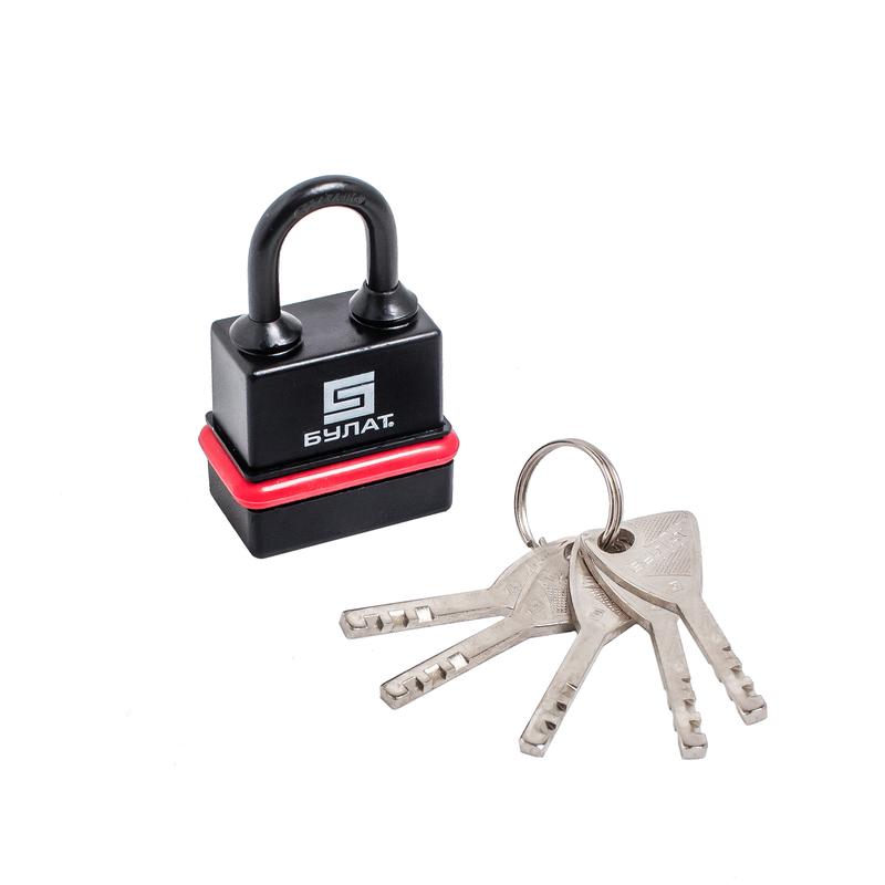 Замок навесной «БУЛАТ» предназначен для запирания, распределительных щитов, почтовых ящиков, гаражей, складов, подвалов и прочих помещений. Материал корпуса- высокопрочный чугун. Пластиковый кожух защищает замок от внешнего воздействия окружающей среды. З