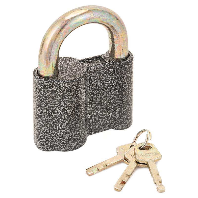Серия "Русский стиль". Замок навесной . Материал корпуса - алюминиевый сплав, полимерное покрытие. Ширина основания корпуса - 77мм, диаметр дужки 14мм. Дисковый механизм секрета, 3 ключа с двойной нарезкой секрета.