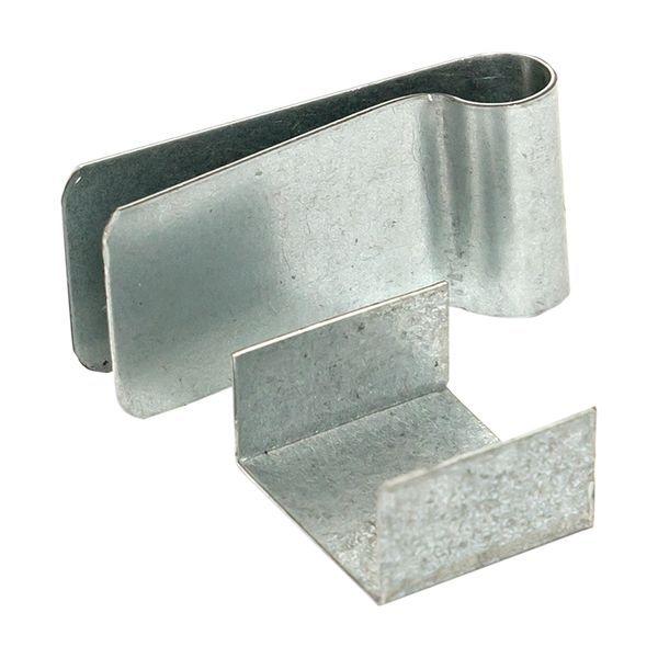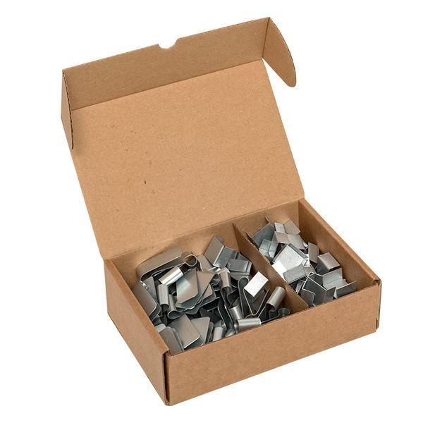 Металлический крепеж ТСР, КТСР представляет собой унифицированный крепеж, изготовленный из оцинкованной стали для крепления как саморегулирующихся (ТСР), так и резистивных нагревательных кабелей постоянной мощности (КТСР). Позволяют осуществить надежное и безопасное крепление нагревательных кабелей в обогреваемых зонах и предотвращает скручивание или самопересечение двух ниток кабеля между собой при монтаже. Выпускается для крепления как одной нитки кабеля к обогреваемой поверхности, так и двух ниток нагревательного кабеля между собой. Для монтажа зажимов в обогреваемых желобах применяется полоса стальная оцинкованная 0,5х15 мм, для монтажа зажимов с нагревательным кабелем в водосточных трубах – трос стальной в ПВХ оболочке.