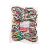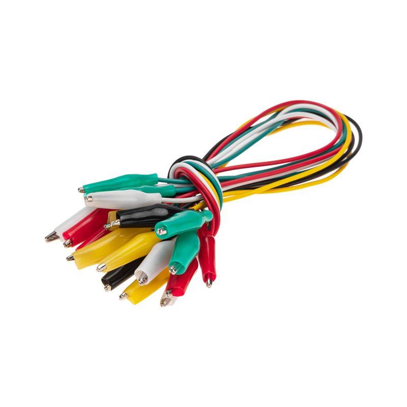 Зажимы «крокодил» с проводом предназначены для оперативного соединения или разъединения контактов при выполнении измерительных работ или при монтаже электрических и слаботочных сетей. Изделие представляет собой изолированный провод длиной 40 мм, с обеих сторон которого располагаются зажимы. Зажим состоит из двух деталей с зубцами, которые в середине скреплены специальным штифтом и могут вращаться вокруг оси соединения. Сжатие зажимов обеспечивается пружиной, вставленной с другой стороны штифта Контактная часть изделия изготавливается из стали с никелированным покрытием и полностью закрыта изолятором. Для обеспечения безопасного использования предусмотрена изоляция из ПВХ, которая исключает случайный контакт с другими токоведущими частями и защищает пользователя от поражения электрическим током. Цвета изолятора – черный, белый, желтый, красный, зеленый. Набор состоит из 10 пар зажимов (по 2 пары каждого цвета). Цена указана за упаковку. Минимальная партия отгрузки 1 упаковка. Конструкция изделия проста и надежна, что гарантирует его использование в течение длительного времени без потери функциональных свойств.