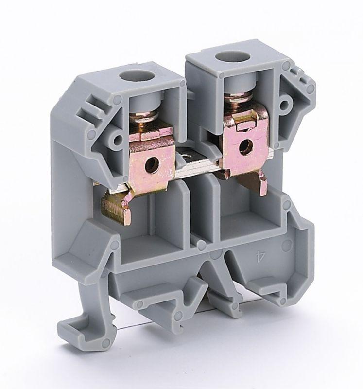Зажим наборный серии ЗН-101 Dekraft ; номинальный ток - 100 А; сечение проводов от 1 до 16 кв.мм; цвет and ndash; серый; материал корпуса - полиамид; материал клемм и винтов and ndash; латунь; монтаж - защелкиванием на DIN-рейку; количество в упаковке and ndash; 50 шт. Клемма выполнена таким образом, что обеспечивает двойной обжим проводника. Это обеспечивается в том числе и за счет насечек на клеммах. Зажимы наборные синего цвета применяются для присоединения нулевого рабочего проводника.