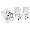Дверной беспроводной электронный звонок с 32 мелодиями, кнопка защищена от влаги и пыли. Работает от батареек: 2 шт А23 для кнопки (входят в комплект), 2 шт ААА мизинчиковые для динамика (в комплект не входят). Радиус действия до 100 метров. Аккуратный современный дизайн, базовый белый цвет. Динамик выполнен в лаконичном стиле - он украшен элегантными серебристыми узорами, над кнопкой предусмотрено пространство для указания номера квартиры. Подходит для использования как внутри подъезда, так и на улице.