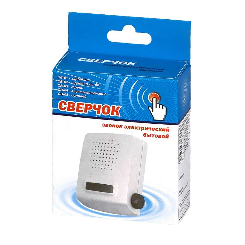 Звонок проводной Сверчок электрон. гонг 220В 80-90дБА бел. Тритон СВ-04